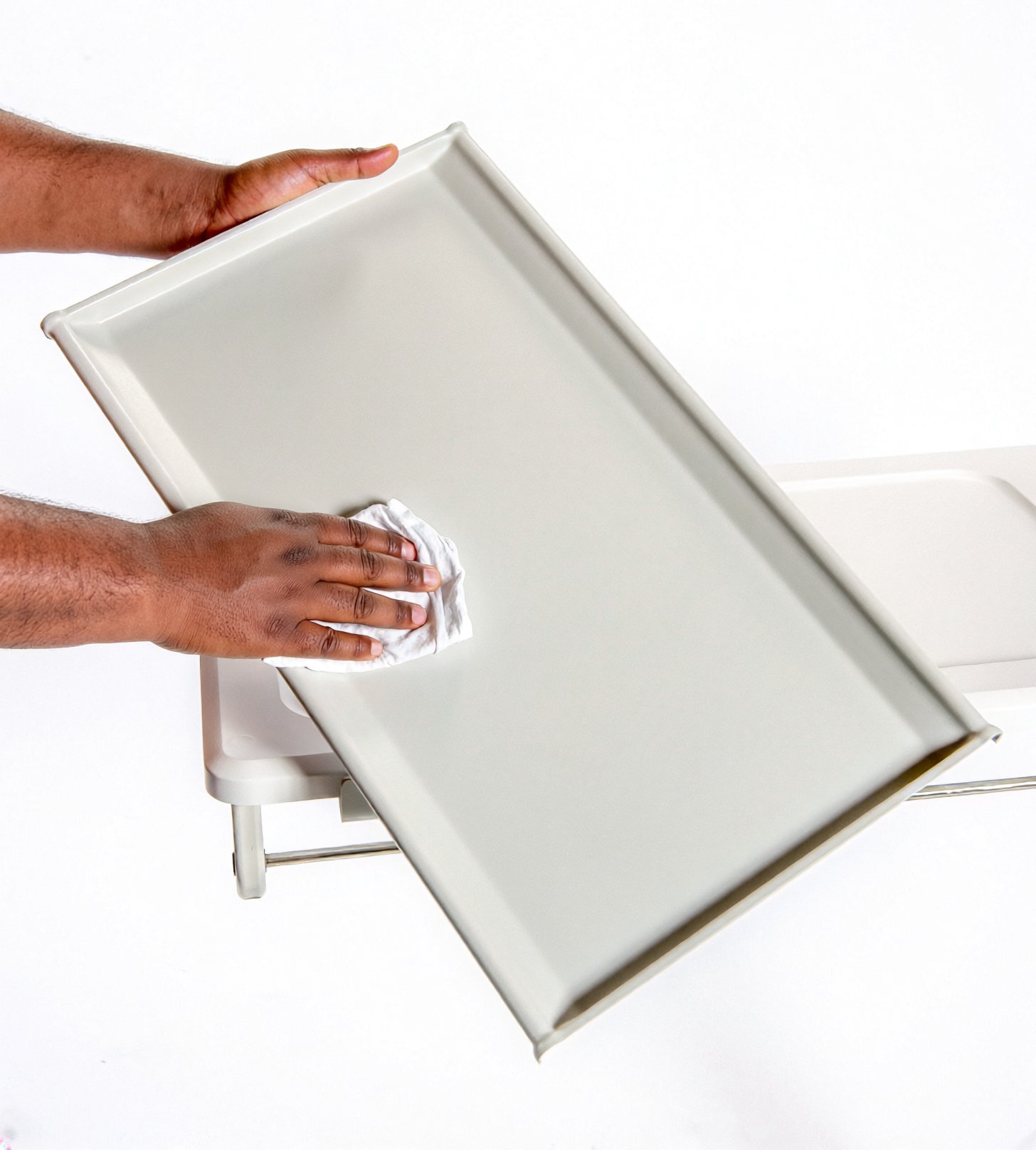 A hospital’s Environmental Services department is critical for infection prevention. Surfaces that are easy to clean are more likely to be cleaned. Seamless thermoformed KYDEX withstands commonly used hospital cleaners and disinfectants. Top surface is supported underneath with a plate which is free from obstructions and is easily wiped down. Optional lower shelf is removable for easy cleaning and makes the interior of the storage pedestal completely accessible.